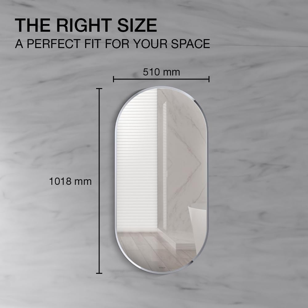 Kohler Essential Capsule Mirror for Wall | HD Reflection with 100% Silver Coating | Decorative Mirror for Bedroom/Living Room/Bathroom | Polished Chrome Aluminium Frame, 508 x 1016 mm